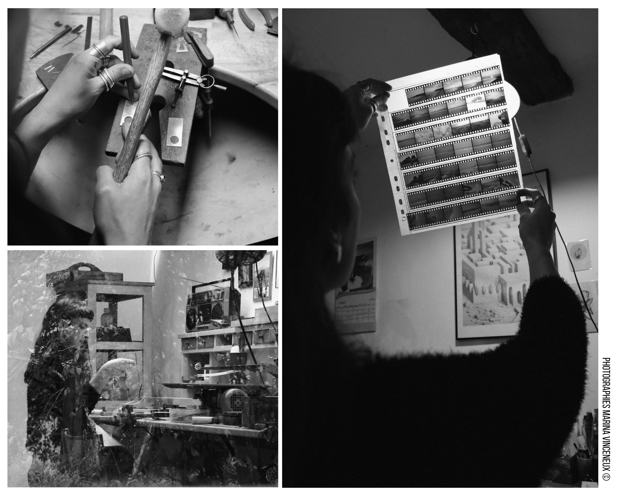 La diapositive, en particulier, me permet de capter la lumière comme une empreinte de temps, que je transpose dans le corps du bijou — un fragment de mémoire devenu forme.